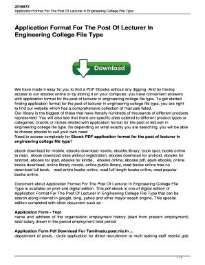 What are you waiting for? Let's get the Application Format For The Post Of Lecturer In Engineering College File Type Pdf ebook immediately by pressing the button below. You just need to create a FREE account.